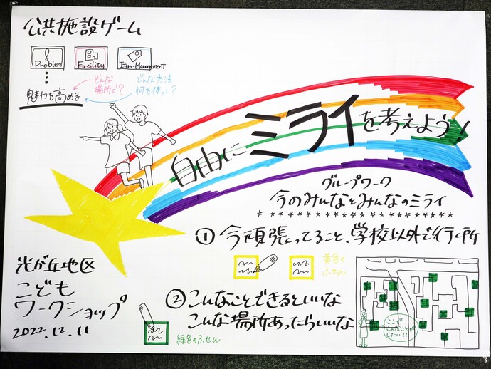 光が丘地区の公共施設再編に向けて、小学校再編の進捗状況を踏まえながら、地域の皆さまとともに、閉校が見込まれる青葉小学校の跡地の利活用を想定した取り組みを実施し、今後の基本構想や計画につなげていくために、ワークショップを開催しました。