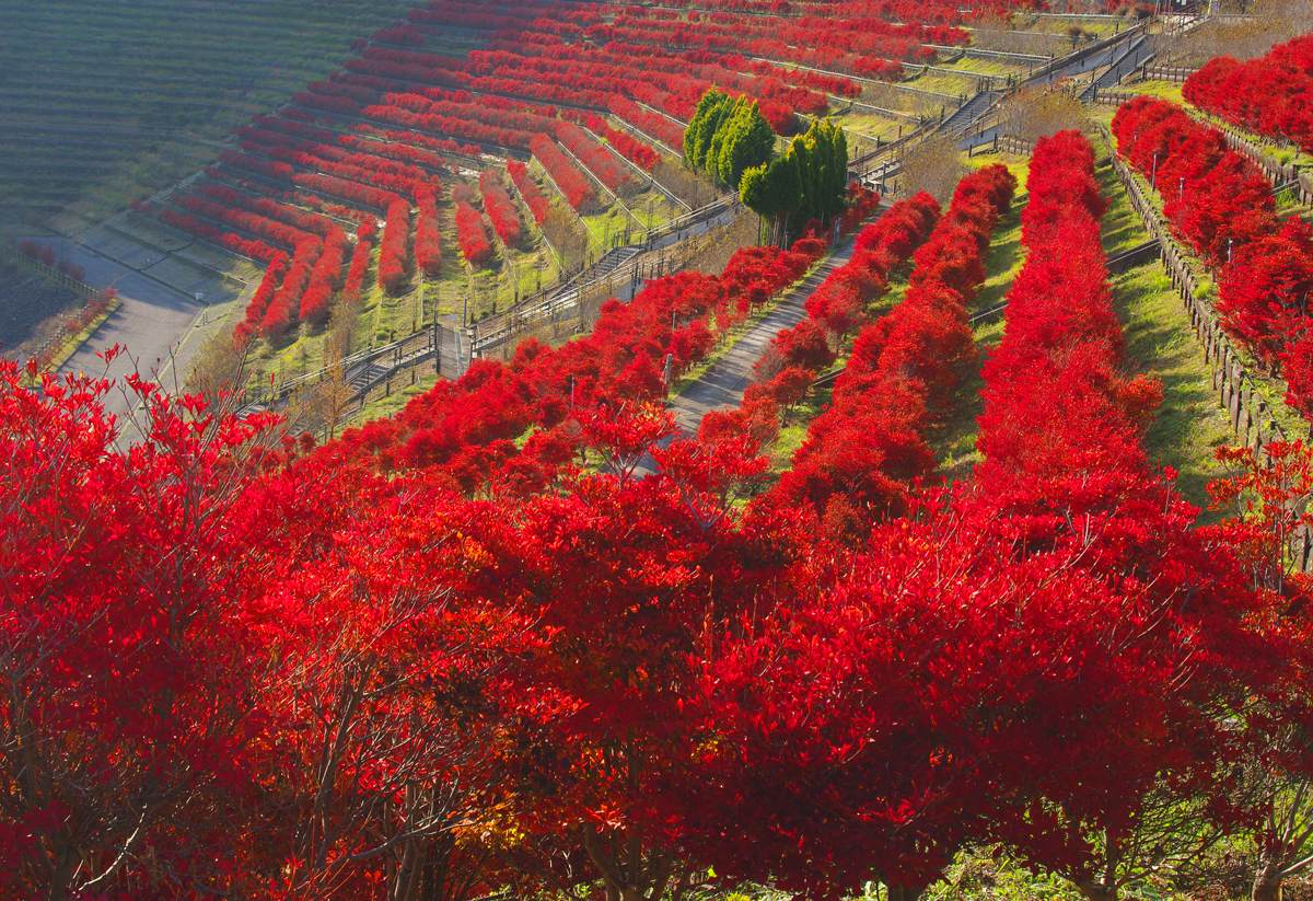 小春日和の昼下がり、バスにて訪問し宮ケ瀬湖のほとりの雄大な園地を見て自然の中にも整然と植栽されたドウダンツツジの紅葉の鮮やかさにひかれて。普段の管理がさぞ大変でしょう。