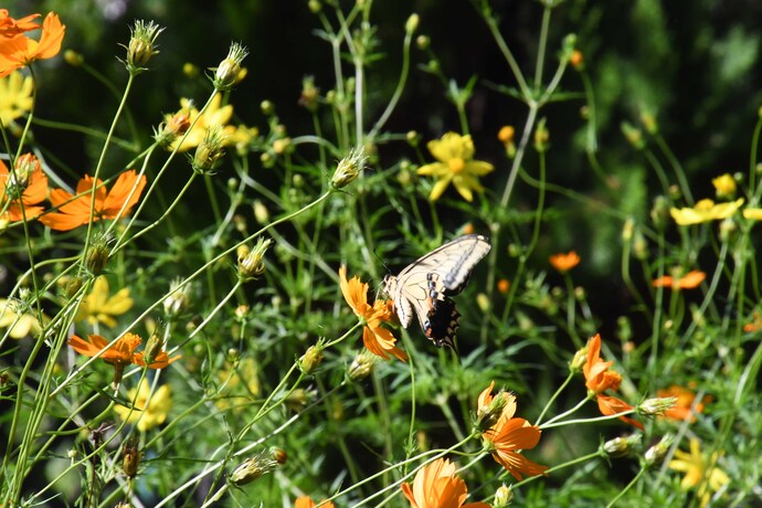 キバナコスモスとアゲハ(相模原麻溝公園)(2023年9月撮影分)