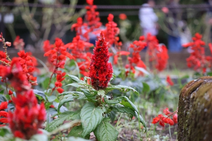 サルビアの中に咲くケイトウ(2025年9月撮影分)