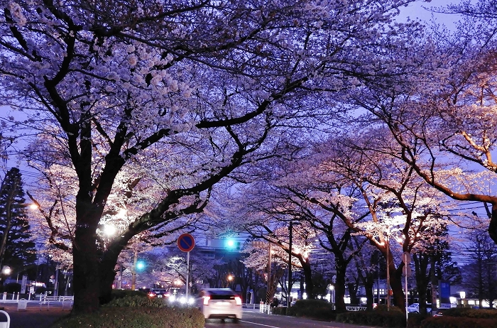 市役所さくら通りの桜ライトアップ(2019年4月撮影)