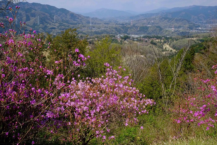 堂所山のミツバツツジと三ヶ木の眺望(2020年4月撮影)