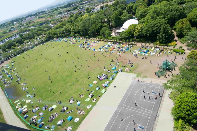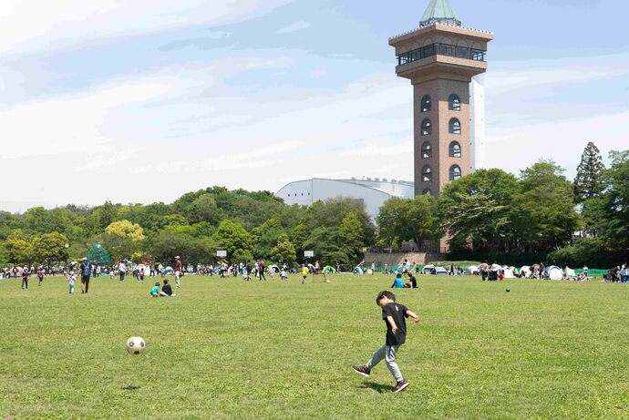 麻溝公園 グリーンタワーから芝生広場を望む(2023年5月撮影分)