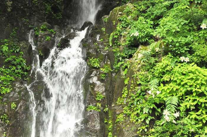 孫右衛門の滝とやまゆり(2019年7月撮影)